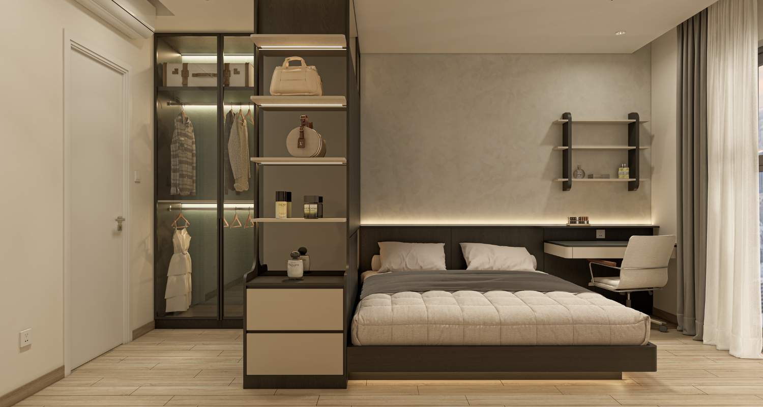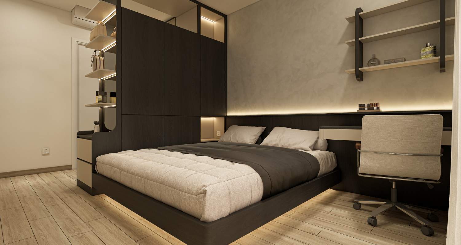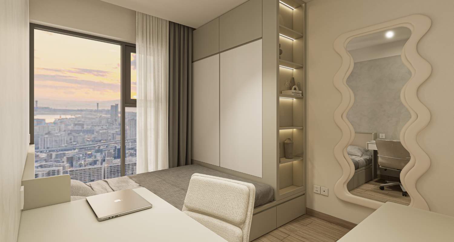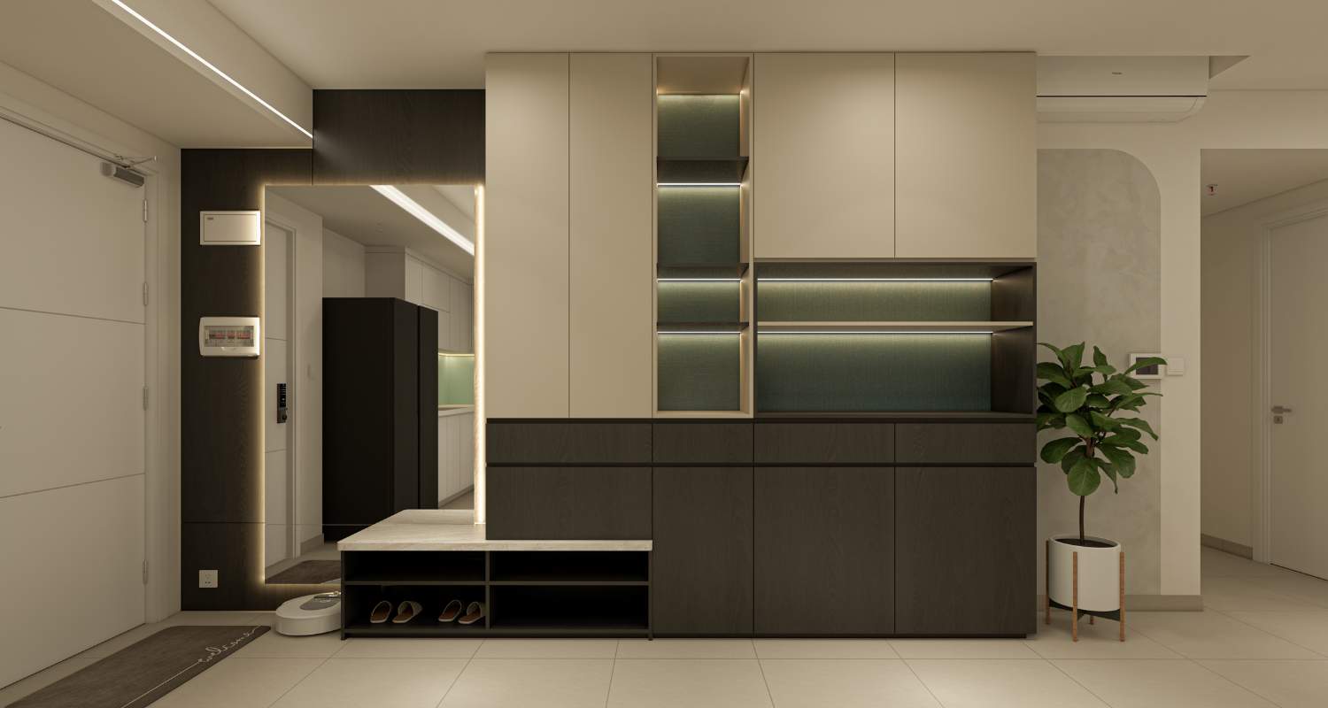 không gian nội thất của căn hộ thuộc chung cư Urban Green do EBEN Interior thiết kế mang đậm dấu ấn hiện đại, tối giản và tinh tế. Với gam màu trung tính chủ đạo, ánh sáng tự nhiên từ cửa kính lớn được tận dụng tối đa, giúp không gian trở nên thoáng đãng và gần gũi với thiên nhiên – đúng với tinh thần “sống xanh” của Urban Green.